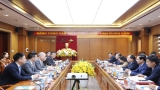 严介和理事长同越共中央政治局委员、河内市委书记丁进勇会谈