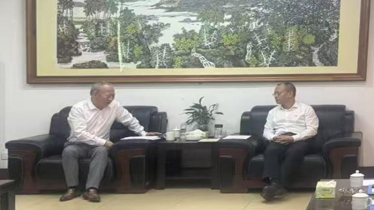 6月11日,严介和理事长同海南省定安县委书记刘峰松会谈,双方就加强合作、城市发展更新进行交流。