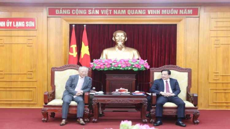 严介和理事长同越南国会代表、谅山省国会代表团团长、谅山省委书记黄文验会谈