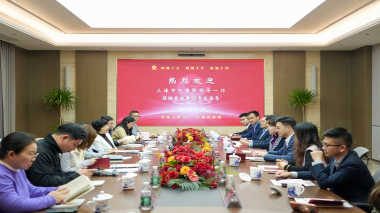 上海市工商联调研部部长李晶姣,经济和社会服务部部长翁一飞,经发中心主任别宗,干部卞卡、李译;杨浦区工商联经济服务部部长马岷海,区投促办延吉片区负责人王阳;苏商系董事、苏商资本董事局主席李玉国,苏商系副总裁王怡,人力资源中心总经理刘定换,文品中心总经理李旭义,运营中心副总经理张柯烽,总裁助理张健伟,运营主管王紫薇等参加会谈。